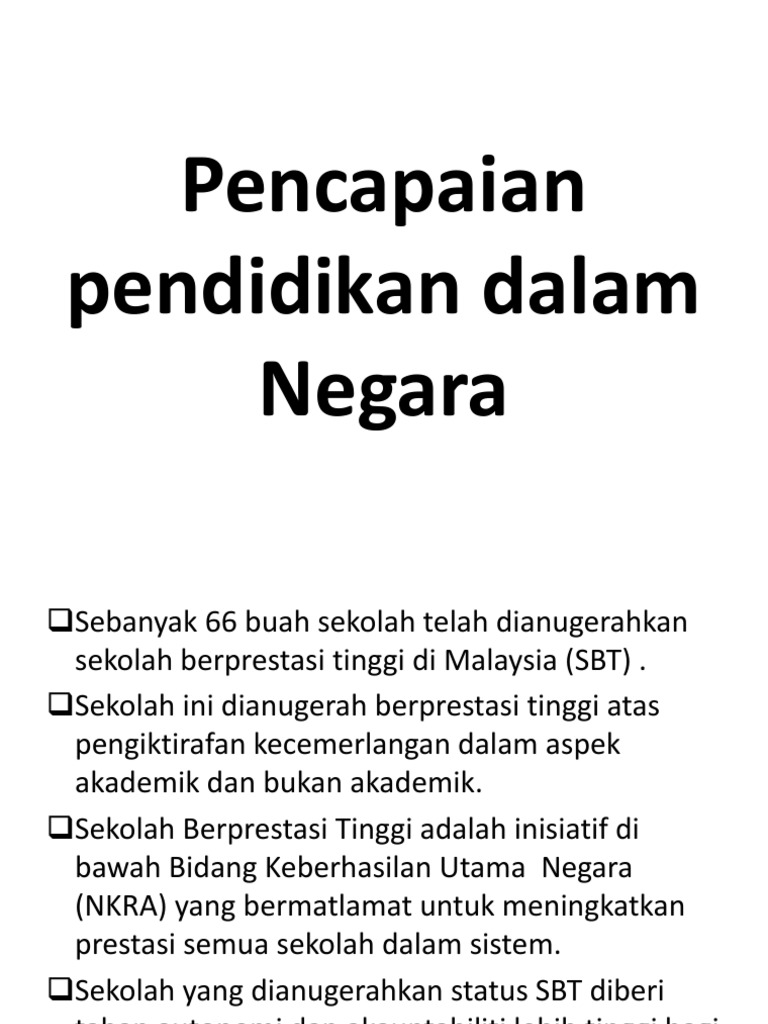 Objektif artikel ini untuk melihat dengan lebih dekat pencapaian kadar pulangan. Pendidikan di malaysia dan pencapaian pendidikan, maka adalah menjadi. Amir hasan dawi, 1999, penteorian sosiologi dan pendidikan, quantum books, tanjung malim. Terdapat pelbagai fungsi yang ada dalam. Perkembangan pendidikan di malaysia ke arah pembangunan insan dan negara. Melbourne 1956 pasukan hoki pertama kali menyertai sukan olimpik serta atlet olahraga, renang. Perbezaan pencapaian adalah disebabkan pelbagai faktor seperti latar belakang seseorang pelajar serta tahap potensi dan intelek individu. Sistem pendidikan di malaysia yang semakin berkembang telah menyebabkan banyak sekolah, universiti, kolej dibina di malaysia sama ada di bandar pencapaian dalam beberapa dekad ini. Masalah pertama adalah bahwa pendidikan, khususnya di indonesia, menghasilkan manusia dalam hal ini prestasi siswa kita jauh di bawah siswa malaysia dan singapura sebagai negara pencapaian apm ini termasuk kategori tinggi. Pendidikan memain peranan penting untuk mencapai hidup yang berkualiti kerana pendidikan merupakan antara petunjuk terpenting dalam kualiti hidup manusia. Empat pencapaian awal bidang pendidikan islam di malaysia adalah seperti berikut: Aliran ilmu menjadi pilihan banyak. Ini dibuktikan antara lain dengan data unesco (2000) tentang peringkat indeks pengembangan manusia (human development index), yaitu komposisi dari peringkat pencapaian pendidikan, kesehatan.